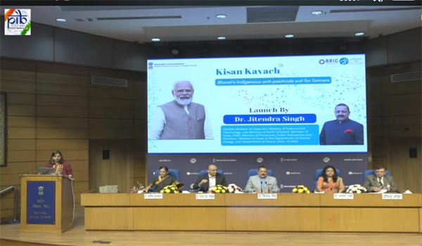 केंद्रीय विज्ञान एवं प्रौद्योगिकी राज्य मंत्री डॉ. जितेंद्र सिंह ने भारत का स्वदेशी कीटनाशक रोधी सूट 'किसान कवच' लॉन्च किया। किसान कवच किसानों को कीटनाशकों से होने वाले स्वास्थ्य खतरों से बचाए..